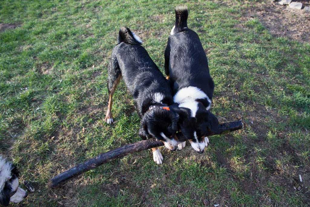 Nachdem die erste Energie verpufft war, kam Paul dann auf die Idee, ein “Stöckchen” mit ins Spiel zu bringen, das zuerst natürlich jeder haben wollte…